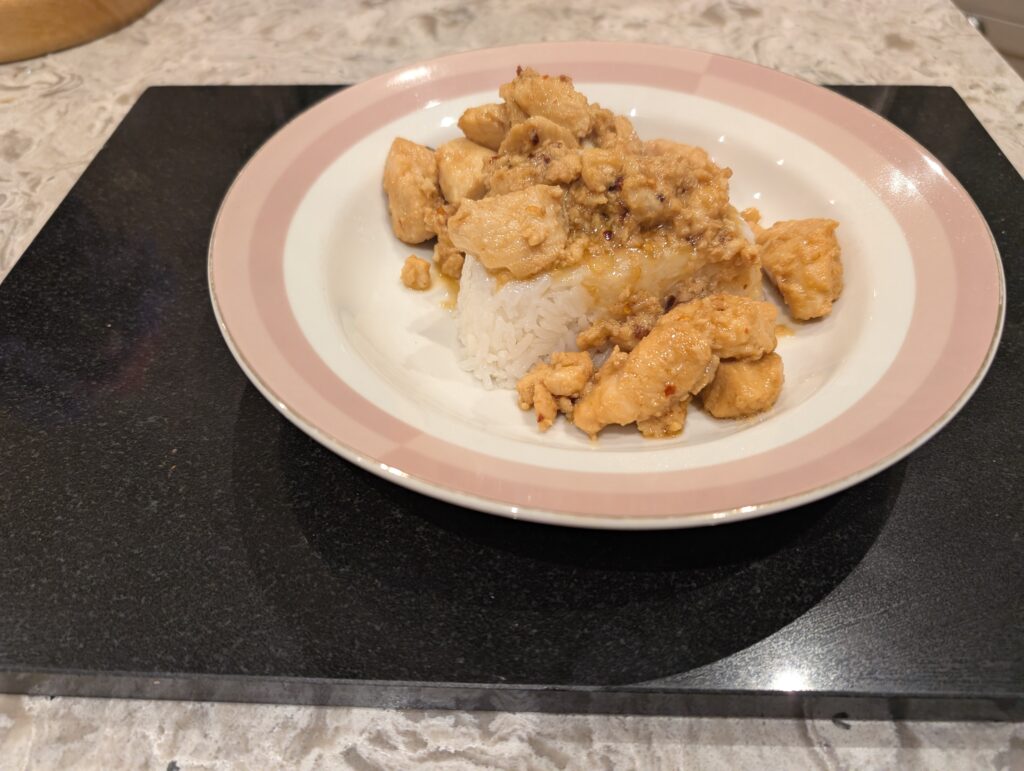 Once the fish hits a hot wok or frying pan, it only needs a short cook to turn golden and glossy. Served over rice with the crunchy salad, it is fresh, satisfying, and perfect for a quick dinner that still feels a bit special.